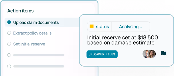 Teemant automates FNOL, declarations, and document workflows. Agents engage claimants via chat, portals, or email, capture data accurately, and feed it directly into claims systems — reducing manual work and cycle times